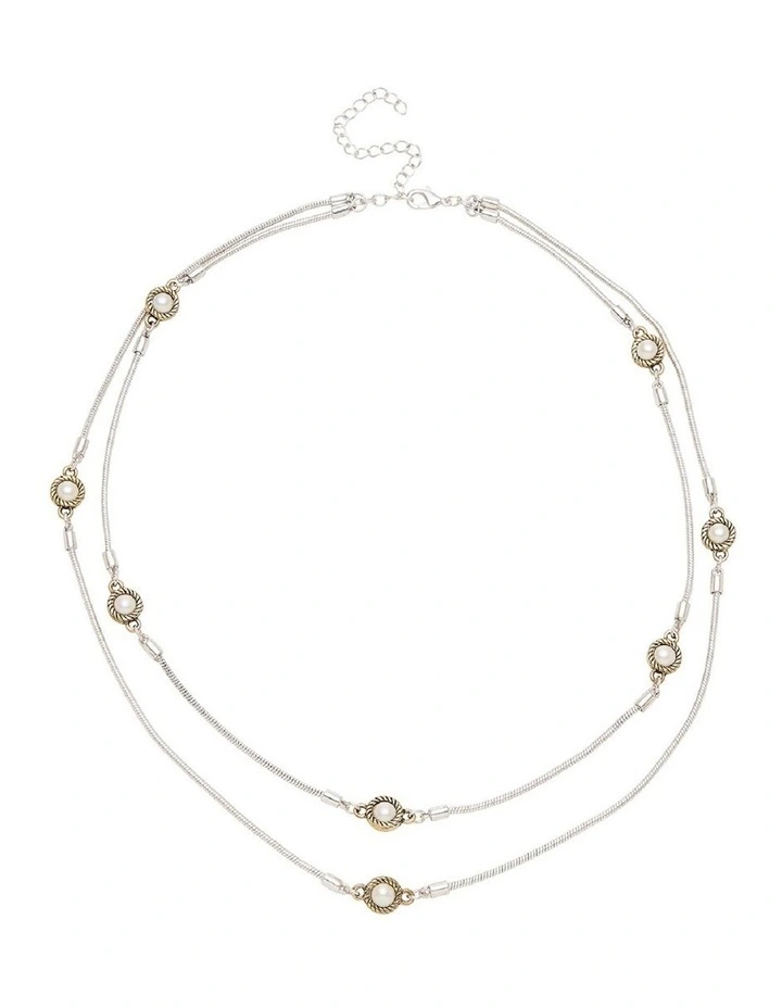 Capturing the hearts of Australian women since 1948, the Barcs Australia brand has built a reputation for quality craftsmanship and commitment to classic yet contemporary fashion jewellery designs. Complete your look with the gorgeous Pearlite Necklace. This eye-catching, double-strand necklace features bright silver-coloured chains and gold-coloured plating with lustrous faux pearl accents. To complete your look, pair it with the Pearlite Stretch Bracelet, available separately.