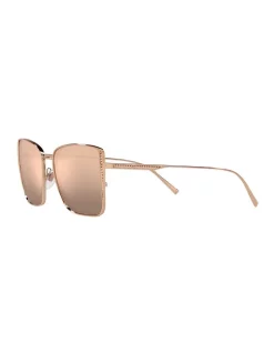 The edgy geometry of studs meets the enticing sophistication of Bvlgari for a perfect match. This glam metal style oozes a rock chic attitude with stud detailing on the front and temples. Stud detailing alone the temples on the frames in pink gold, pale gold or silver. Oversized square sun style with 5 standout colourways including a black enamel/pink gold mix. Luxurious gold plated lenses on pink gold and black skus or new photochromic clear to amethyst lens.