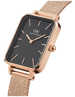 Cheap 😍 Daniel Wellington Quadro Pressed Melrose 26mm Rose Gold/Black Stainless Steel Mesh ⌚ Watch πŸ˜€