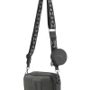 leather. It has double handles and a strap available.
