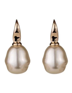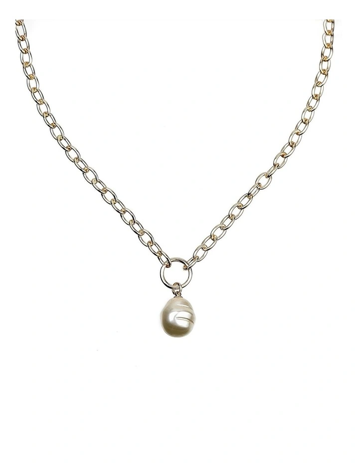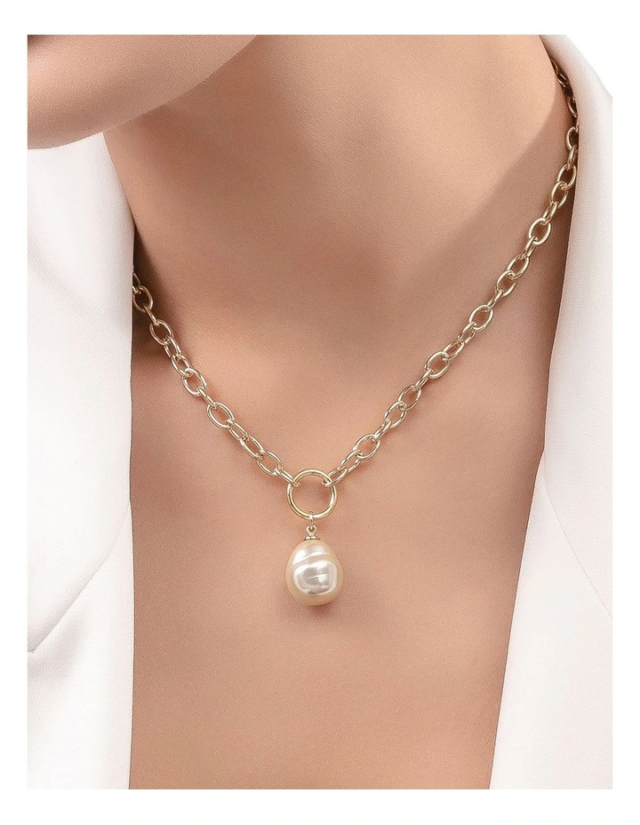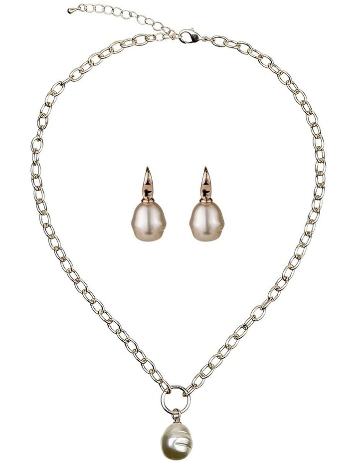 A beautiful gift box set featuring baroque style pearl earrings and a matching baroque chain pearl necklace.