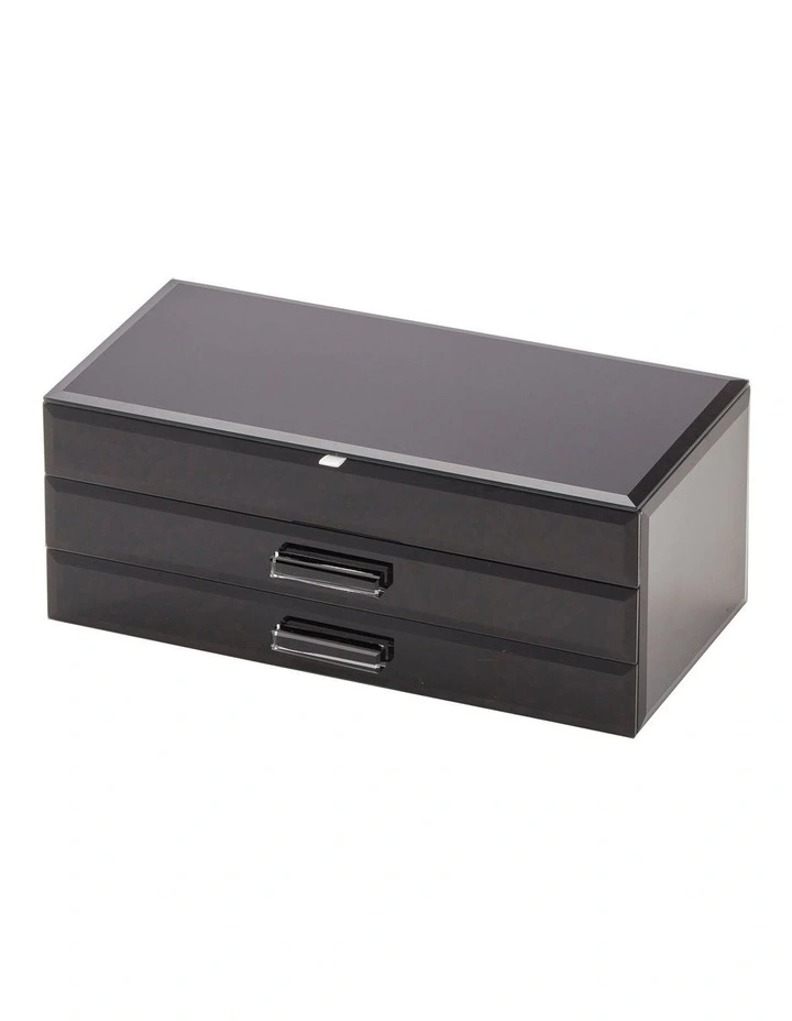 Functionality meets fabulous style with this glass jewellery box. It features three tiers: one compartmentalised top section plus two removable drawers, so there’s plenty of room for rings, earrings, bracelets and necklaces. Every item will be safely stored, neatly arranged and set against tactile velvet to protect it from scratches. The glass box will glisten in the light to bring an air of vintage glamour to your vanity table. What more could a girl want?