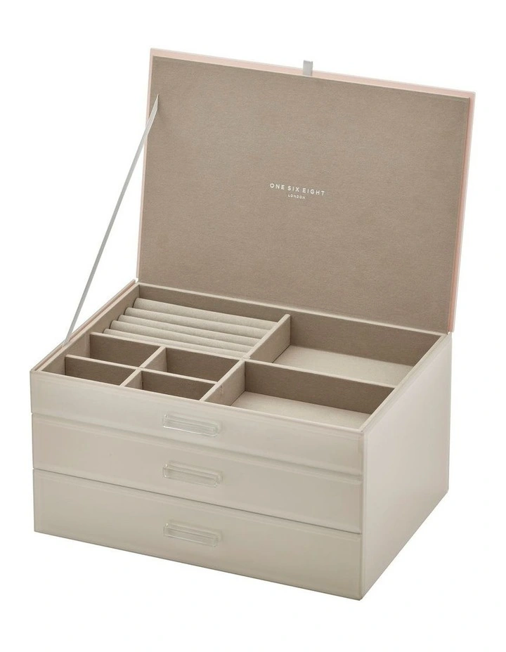 - Three tiers including two removable drawers