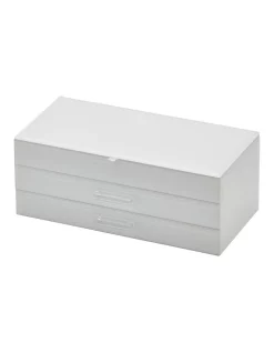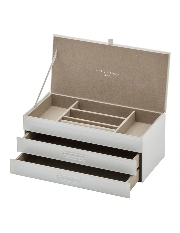 Functionality meets fabulous style with this glass jewellery box. It features three tiers: one compartmentalised top section plus two removable drawers, so there’s plenty of room for rings, earrings, bracelets and necklaces. Every item will be safely stored, neatly arranged and set against tactile velvet to protect it from scratches. The glass box will glisten in the light to bring an air of vintage glamour to your vanity table. What more could a girl want?