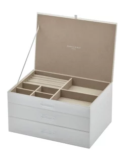 Functionality meets fabulous style with this glass jewellery box. It features three tiers: one compartmentalised top section plus two removable drawers, so there’s plenty of room for rings, earrings, bracelets and necklaces. Every item will be safely stored, neatly arranged and set against tactile velvet to protect it from scratches. The glass box will glisten in the light to bring an air of vintage glamour to your vanity table. What more could a girl want?