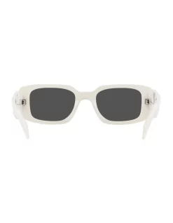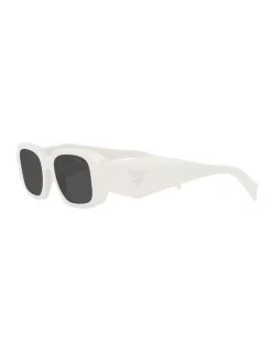Innovation and comfort, all at once: exclusive rectangular frames for her, with Ivory tones and dark grey lenses. Prada finest materials and a strong tradition of craftsmanship.