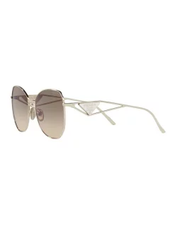 The Prada triangle logo continues to evolve while always staying at the forefront of style and design. Brand new triangle logo reinterpretation, creating a perfect synergy with Prada jewelry collection. Geometric full rim metal construction for an added contemporary edge.