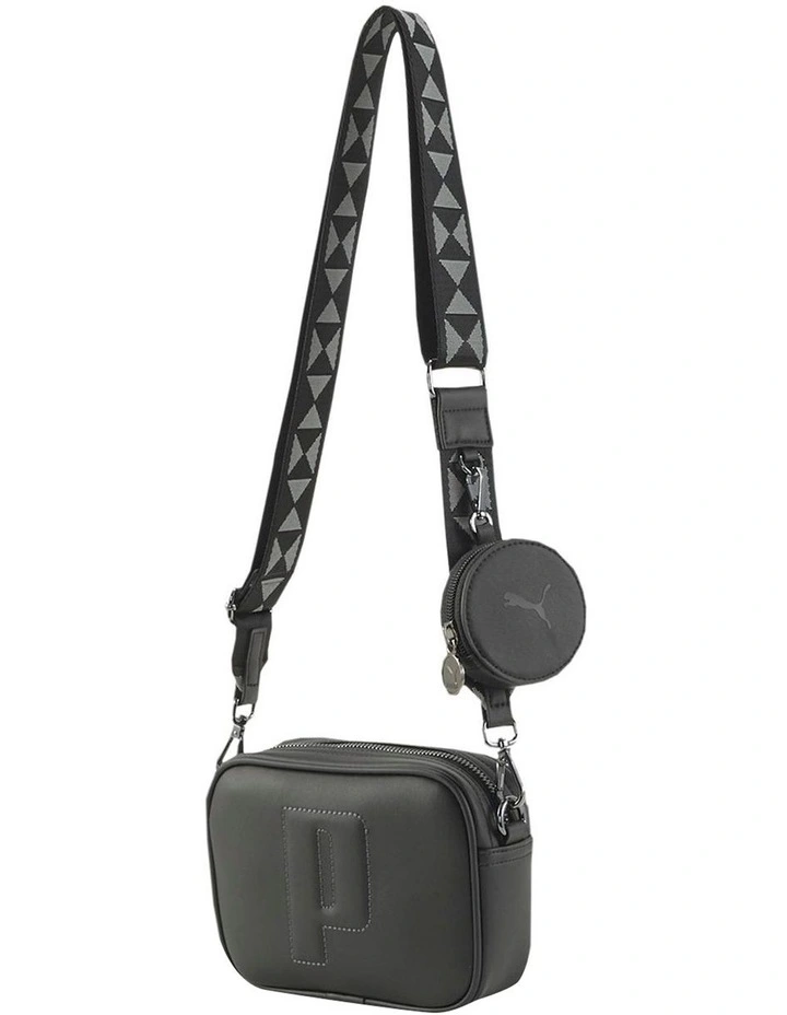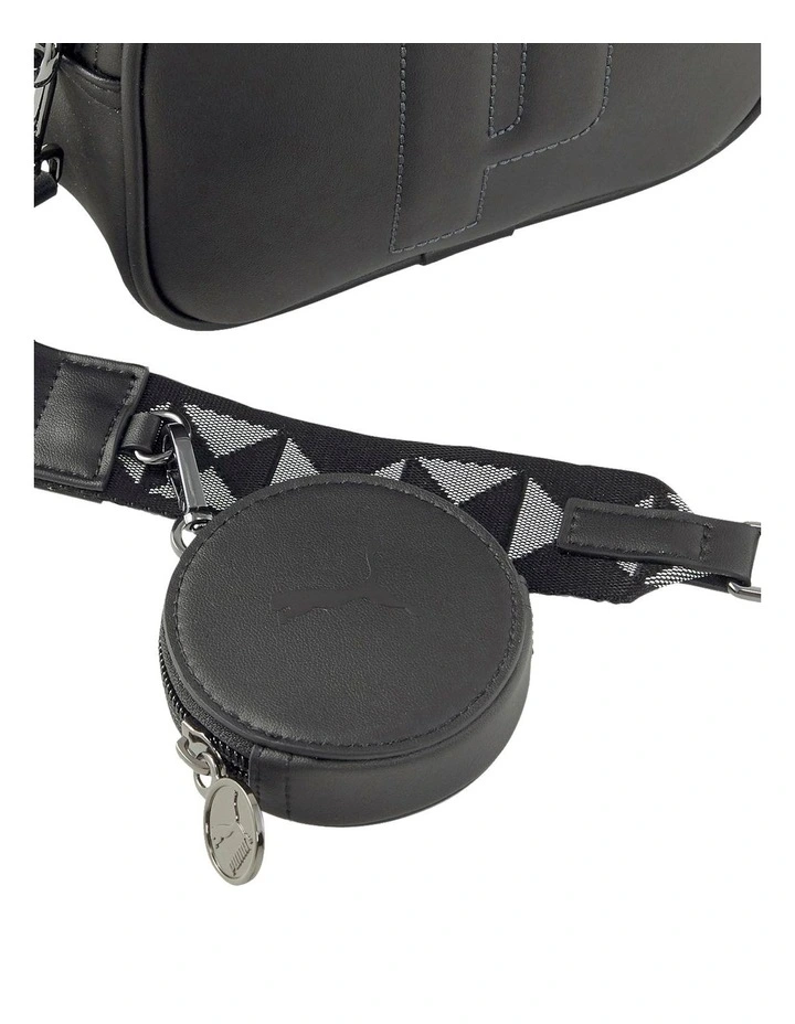 - 150D PES lining with heat embossed PUMA wording, piped construction, detachable webbing shoulder strap with repetitive PUMA wording print with graphic jacquard pattern