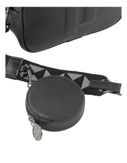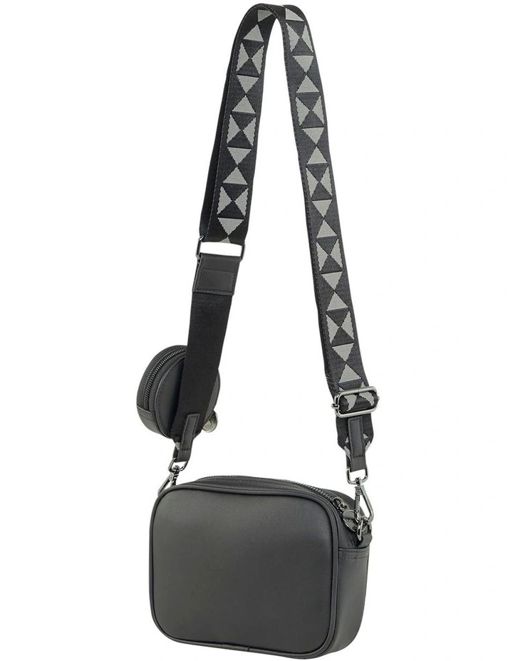 - Detachable pouch with debossed Cat Logo on shoulder strap with zip opening, branded metal hardware, woven label