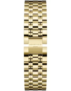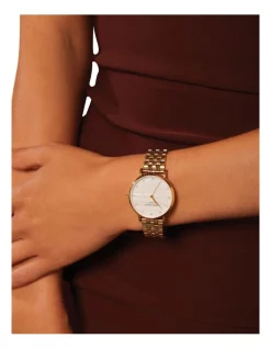 The Upper East Side is a collection that embodies sophistication and understated luxury. This timepiece features a polished gold bracelet, crystal indices and a mother of pearl dial.