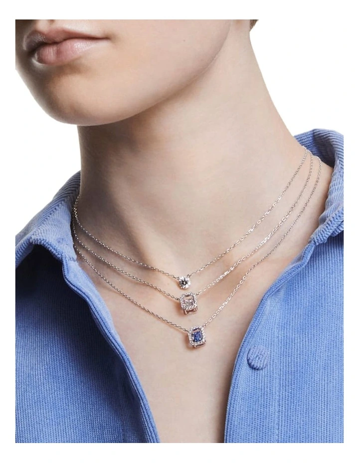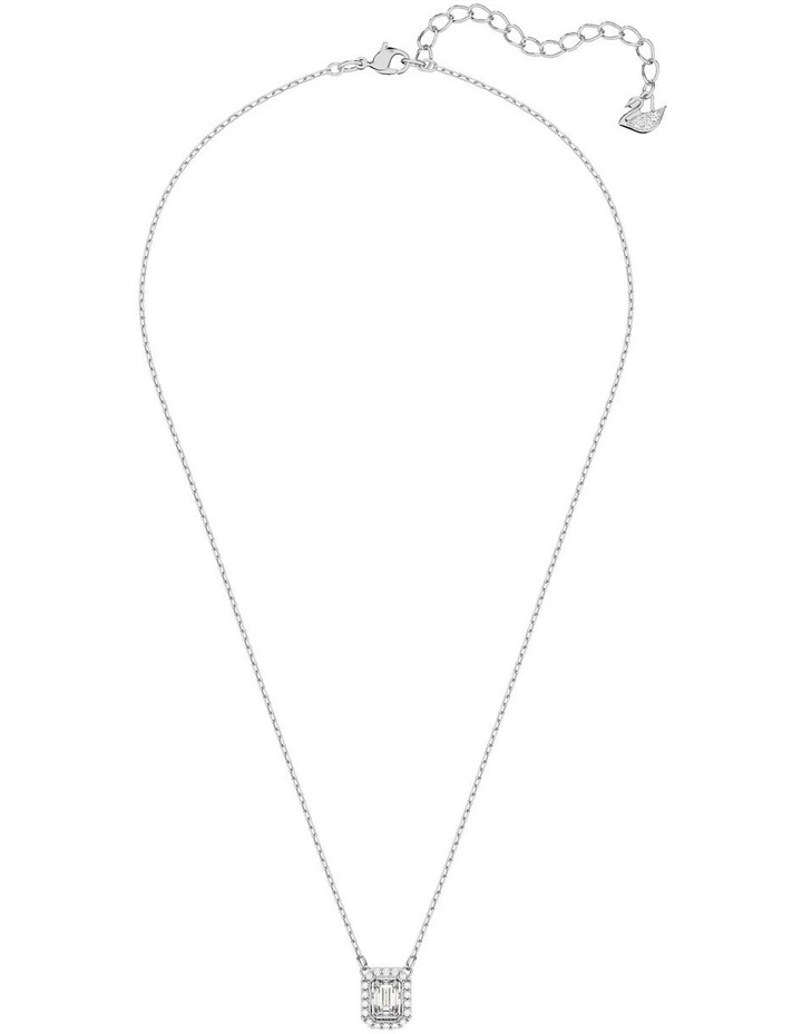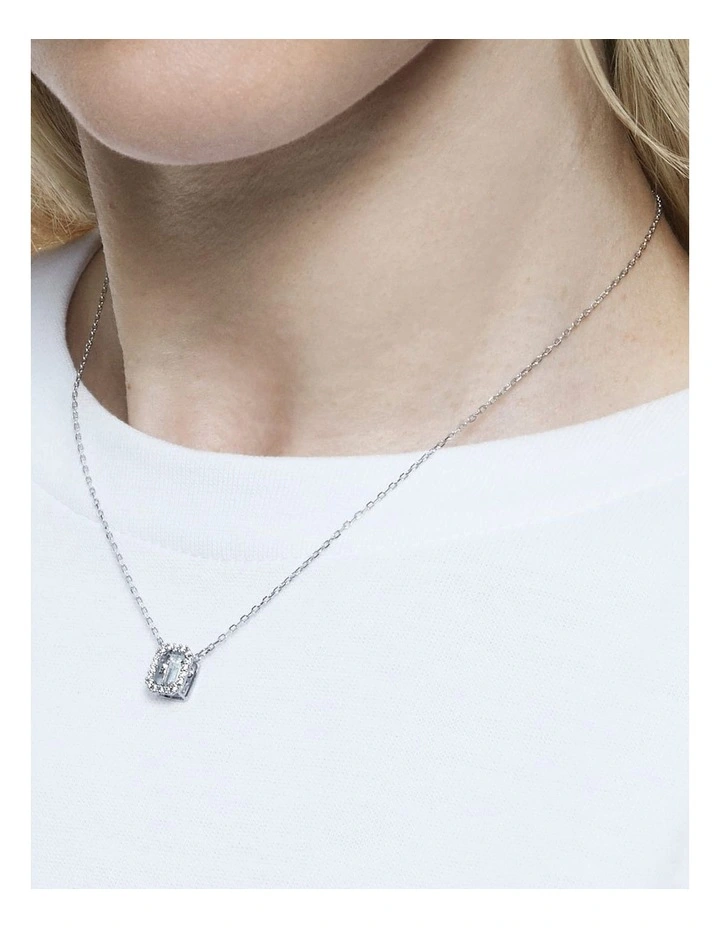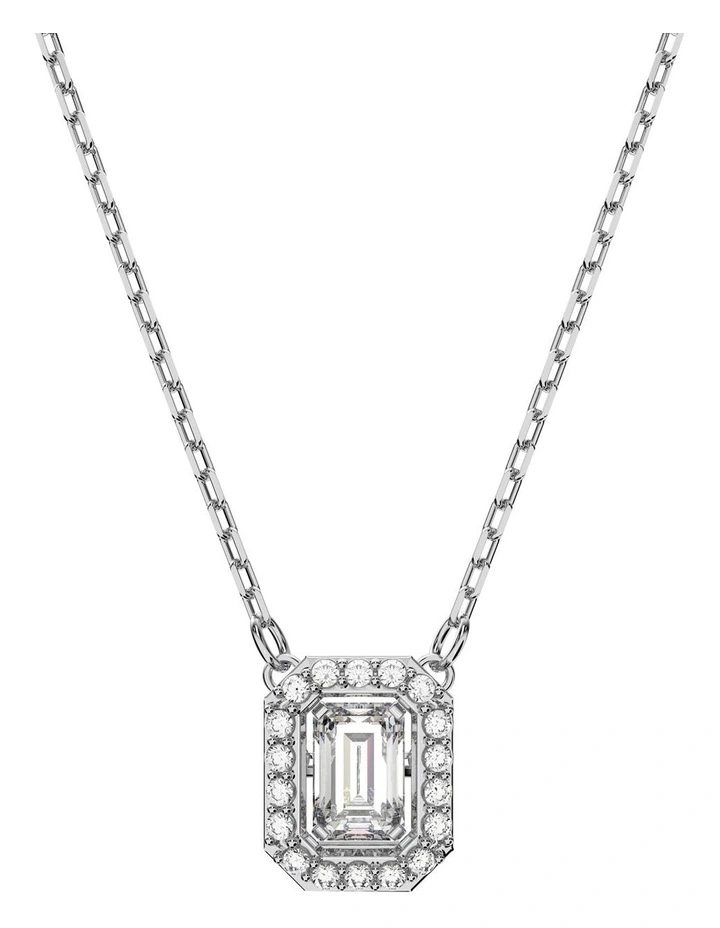 Designed to form a striking octagon shape, this pendant necklace will become one of the hardest working pieces in your wardrobe. A delicate rhodium plated chain holds a clear step cut stone at its centre, which moves as you wear it, and is framed by smaller brilliant cut stones. Endlessly versatile, wear it with a white T-shirt for a subtle statement, or layered with other necklaces for a more dramatic look. This necklace is part of the Millenia family, designed by Creative Director Giovanna Engelbert for Collection I.