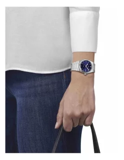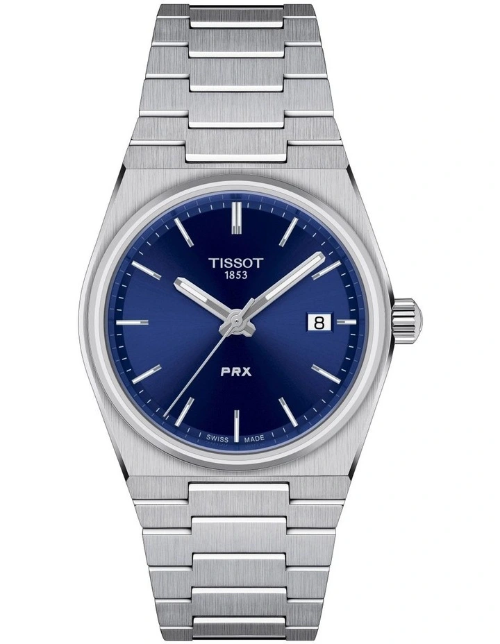 Tissot welcomes new smaller models to its PRX lineup with its PRX 35mm. A throwback 1978 design with its slim look and integrated case and bracelet. Perfect for men and women with an eye for style, this Swiss-made watch has a scratch-resistant sapphire crystal, blue dial and satin-finish stainless steel bracelet.