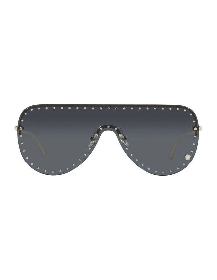 Designed to dazzle – light-filled coloured Swarovski crystals or metal studs redefine the high-profile design of the original Versace muse: Glam Medusa.