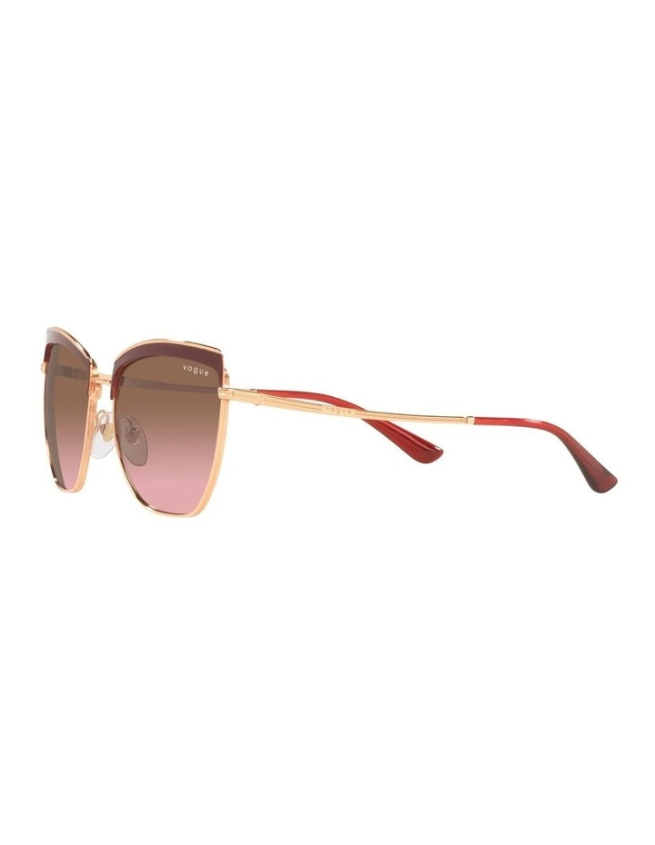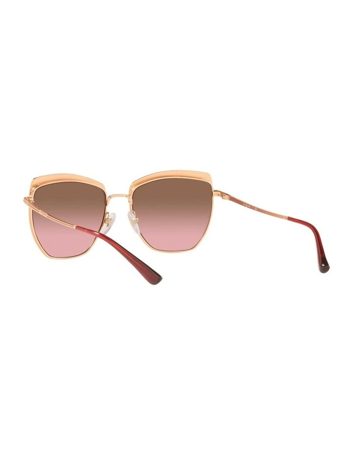 In line with the metal trend, this oversize shape colours edgy profiles with feminine flair. Trendy oversize metal square with colourful brows and feminine lens shades. Lightweight frame with arched bridge and metal nosepads for a perfect fit. New curved temples with fine linear embossing and plaque effect logo.