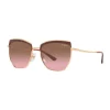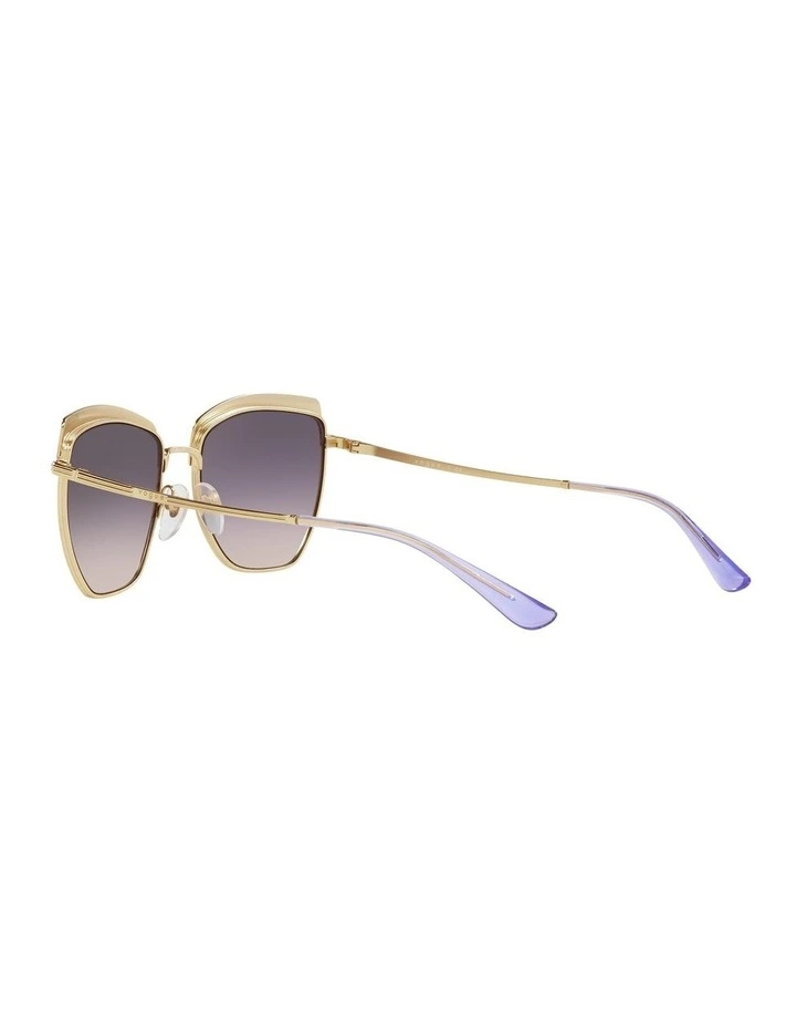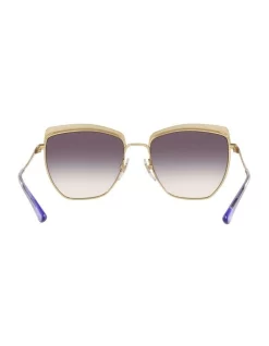 In line with the metal trend, this oversize shape colours edgy profiles with feminine flair. Trendy oversize metal square with colourful brows and feminine lens shades. Lightweight frame with arched bridge and metal nosepads for a perfect fit. New curved temples with fine linear embossing and plaque effect logo.