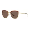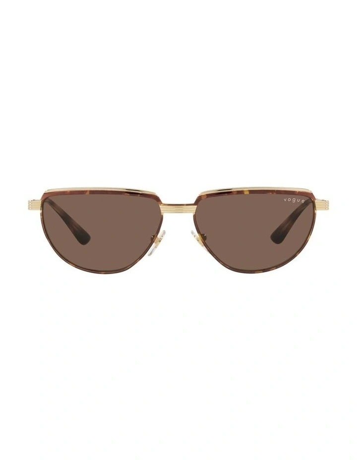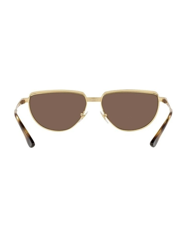 Stylish metal contours and fine detailing raise the bar on 90s style. Semi-round metal shape with stepped top bar in classic lens/frame colors. Wide bridge with embossed linear detail. Elaborate linear temples with perforated detail and plaque effect logo bar.
