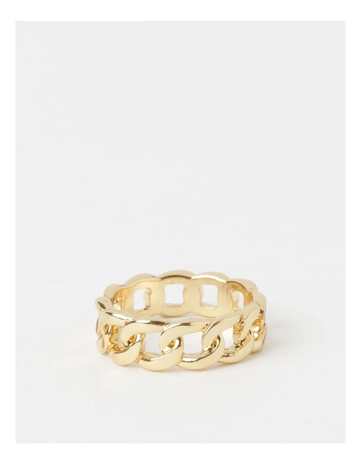Add the perfect finishing touch to your look with a fashion forward ring. This ring has a chain design, in a gold toned setting. Layer with your favourite gold jewellery for maximum impact.